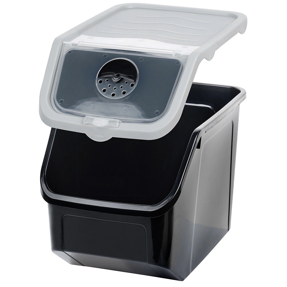 Udržte kuchyňský pořádek a čerstvost potravin s prostorným boxem o objemu 12 l. Díky výklopnému průhlednému víku pohodlně zkontrolujete obsah a snadno nasypete či odeberete potřebné množství. Regulovatelné větrací otvory pomáhají udržet správnou cirkulaci vzduchu, aby si ovoce a zelenina déle zachovaly čerstvost.