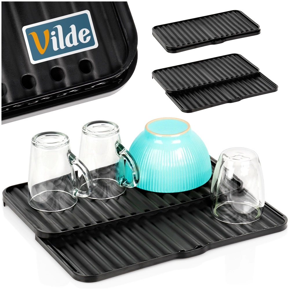 Rozkládací odkapávací podložka je chytré řešení pro sušení hrnků, sklenic, misek i menších talířů. Díky dvěma posuvným částem si jednoduše zvětšíte plochu sušení dle potřeby, zatímco zvýšené žebrování zajišťuje cirkulaci vzduchu a rychlé stékání vody.
