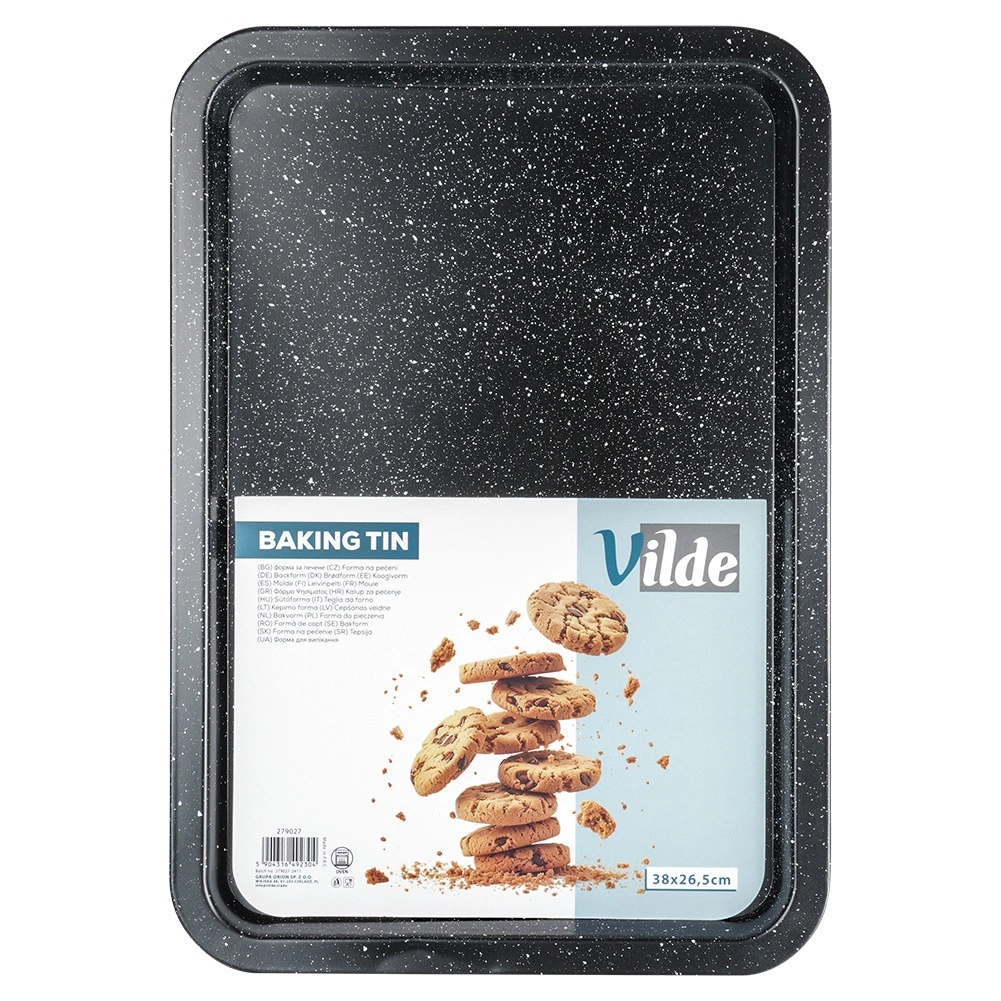 Praktický granitový plech na pečení Vilde o rozměrech 38 × 26,5 × 1,5 cm zajistí rovnoměrné propečení, nepřilnavý povrch a snadné čištění. Ideální na maso, zeleninu, sušenky, hranolky i domácí pizzu se silnějším korpusem.
