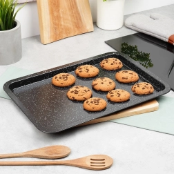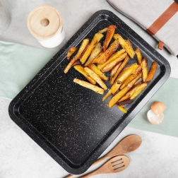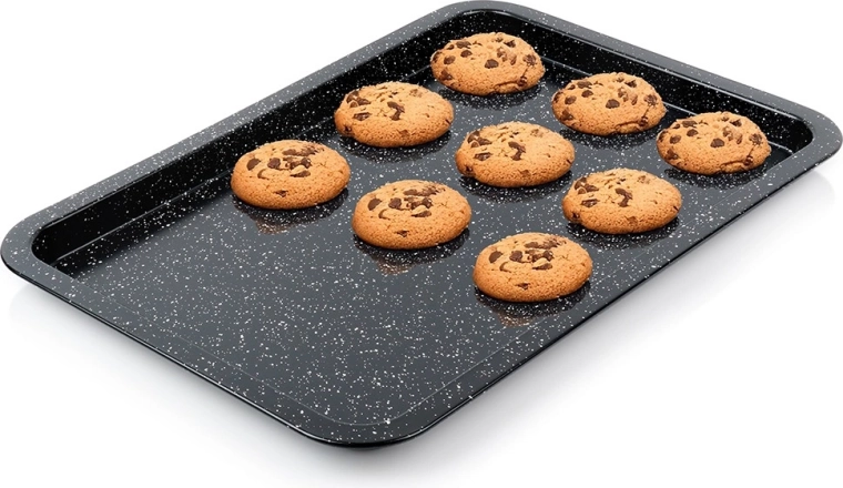 Speciální granitová úprava zabraňuje přichytávání a usnadňuje uvolnění pokrmů, takže upečené sušenky či hranolky snadno sundáte z plechu a úklid je otázkou chvilky.