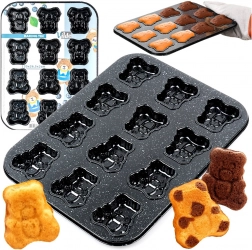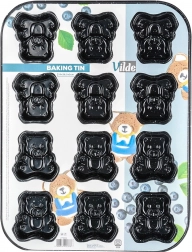 Forma nabízí dvanáct dutin ve tvaru medvídků o velikosti cca 6,5 × 6 cm – ideální porce na sušenky, mini bábovičky či muffiny.