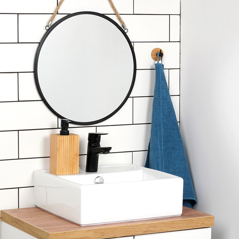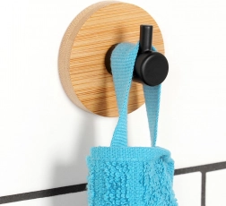Kulatá bambusová základna v kombinaci s černým kovovým čepem dodá interiéru moderní, elegantní akcent a skvěle ladí s koupelnou i kuchyní.