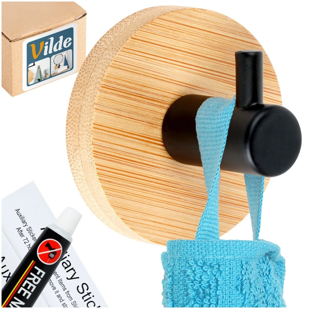 Elegantní háček s kulatou bambusovou podložkou a matně černým kovovým trnem se hodí do moderních i přírodních interiérů. Poskytne praktické místo pro zavěšení ručníků, oblečení nebo tašek, aniž byste museli vrtat do zdi. Díky kvalitním materiálům je odolný a dlouhodobě spolehlivý.