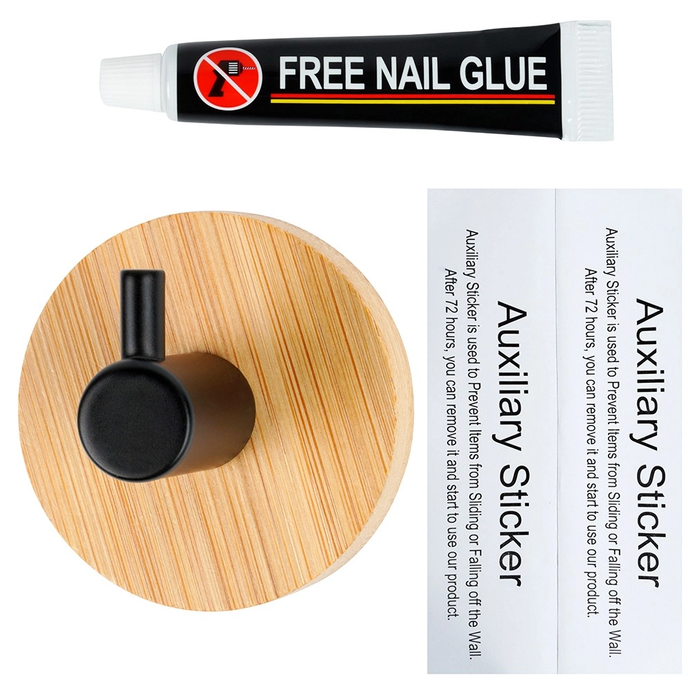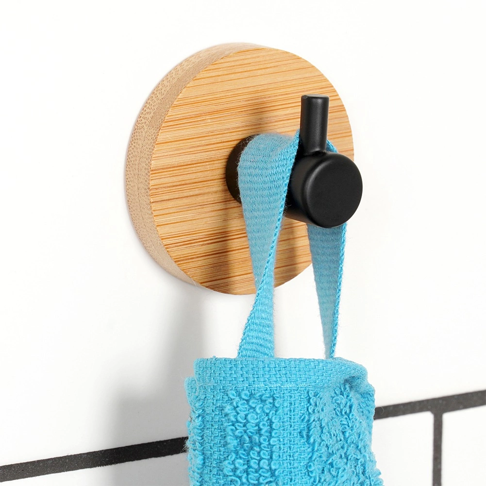 Stylový nástěnný háček s bambusovou základnou a černým kovovým čepem pro každodenní použití v koupelně, kuchyni i předsíni. Montáž bez vrtání pomocí lepidla a samolepicích štítků zajistí pevné a trvalé uchycení. Kompaktní rozměry 5 × 3,5 cm, moderní design a univerzální využití pro ručníky, utěrky, župany či doplňky.