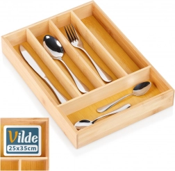 Bambusový příborník do zásuvky o rozměrech 25 × 35 × 5 cm přinese přehledné třídění příborů a kuchyňských nástrojů. Má 5 prostorných přihrádek, je odolný, snadno se čistí a díky přírodnímu designu se hodí do každé kuchyně.
