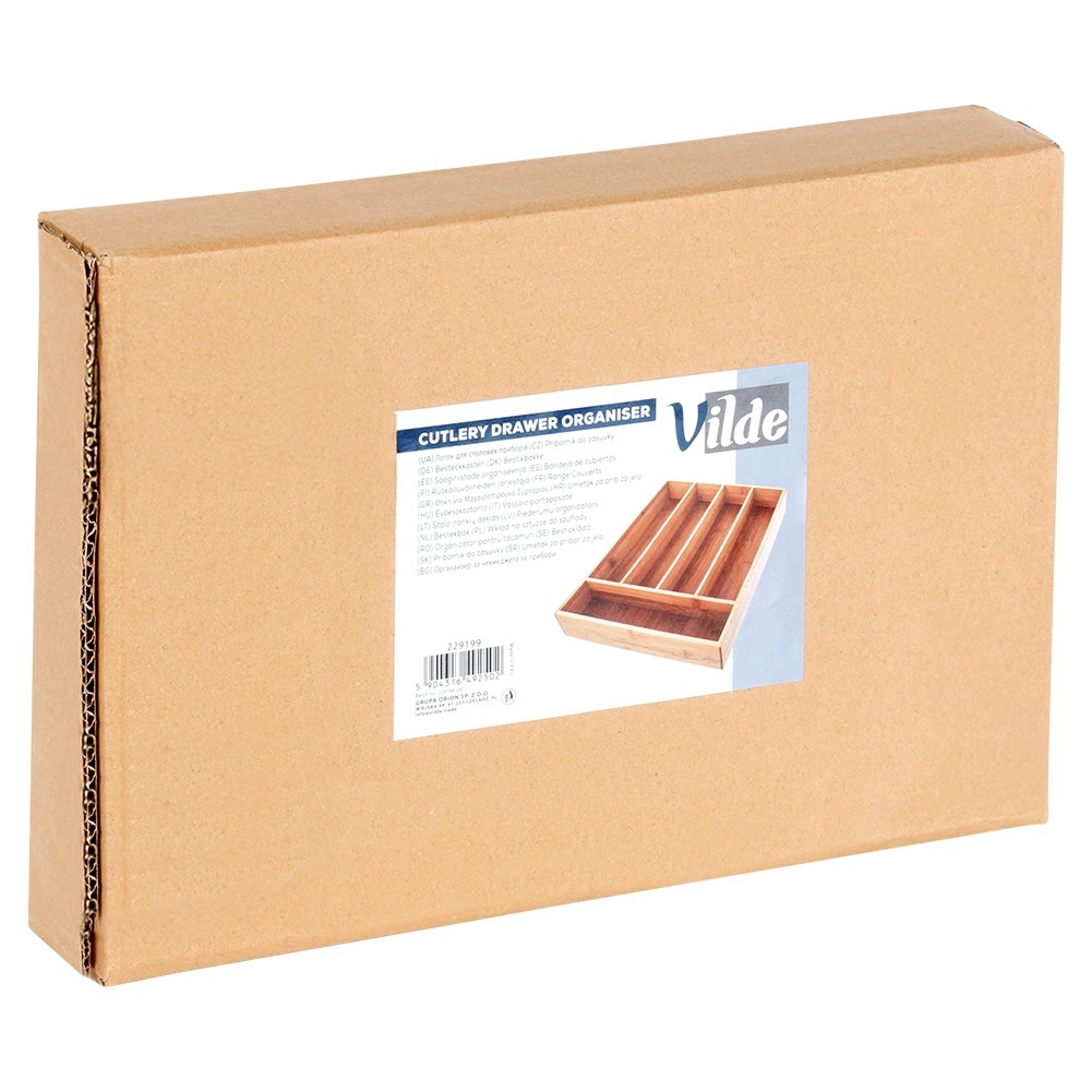 Tento praktický organizér z kvalitního bambusového dřeva udrží vaše příbory, nože a drobné kuchyňské pomůcky vždy na svém místě. 5 promyšleně rozdělených sekcí usnadní každodenní vaření a zajistí rychlý přístup k často používaným předmětům.