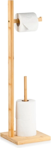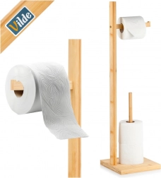 Elegantní bambusový stojan na toaletní papír s výškou 70 cm nabízí podavač pro aktuální roli a úložný prostor až pro 3 náhradní role. Díky stabilní čtvercové základně 19 × 19 cm je pevný a bezpečný, zároveň nevyžaduje vrtání a snadno se přemístí. Přírodní bambus dodá koupelně moderní, dekorativní vzhled a šetří místo i v menších interiérech.