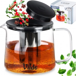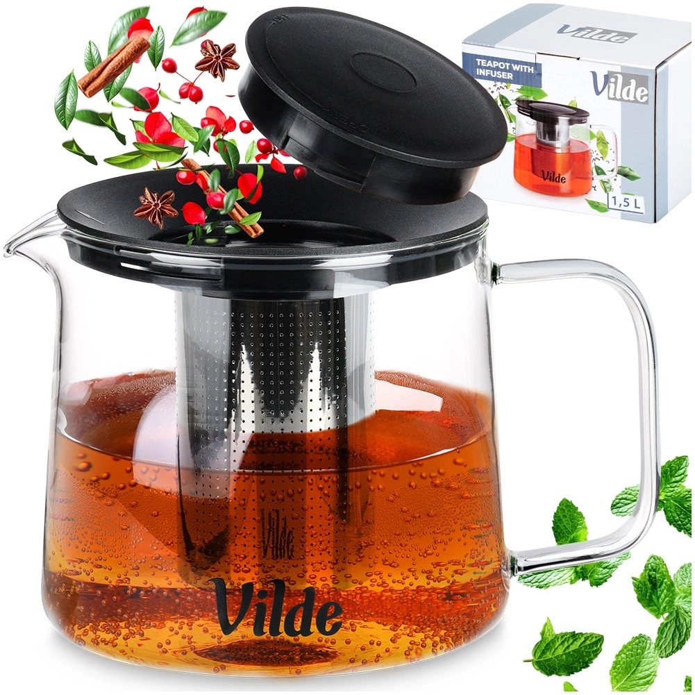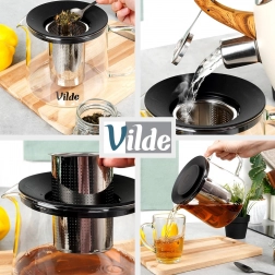 Skleněná konvice Vilde s nerezovým infuzérem umožní pohodlné louhování bez nechtěných čajových lístků v nápoji. Odolné borosilikátové sklo snese teploty od -30 °C do +150 °C, takže je vhodná pro přípravu horkých i chlazených nápojů. Odnímatelné víčko v černé barvě pomáhá udržet teplotu a chrání nápoj před nečistotami.