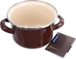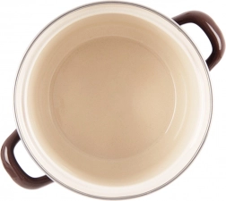Praktický hrnec ze série Brown kombinuje klasický vzhled se spolehlivým výkonem. Emaliovaný povrch je hygienický, odolný vůči skvrnám a pachům a je šetrný k alergikům. Vnitřní béžová glazura umožňuje snadnou kontrolu nad vařením, nerezový okraj zvyšuje odolnost a životnost.