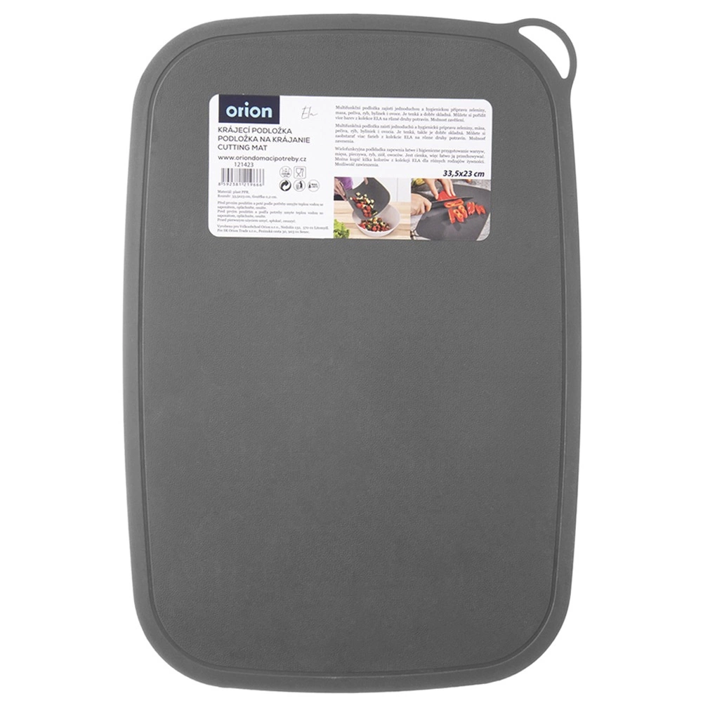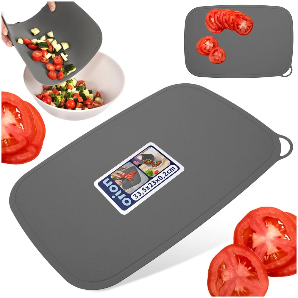 Praktická elastická krájecí podložka z kvalitního plastu v šedé barvě o rozměrech 33,5 × 23 × 0,1 cm. Díky ohybnému provedení snadno sesypete nakrájené suroviny přímo do mísy či hrnce, podložka je nehlučná, lehká a šetří ostří nožů. Lze mýt v myčce a je odolná až do +95 °C. ORION kvalita pro každou kuchyni.