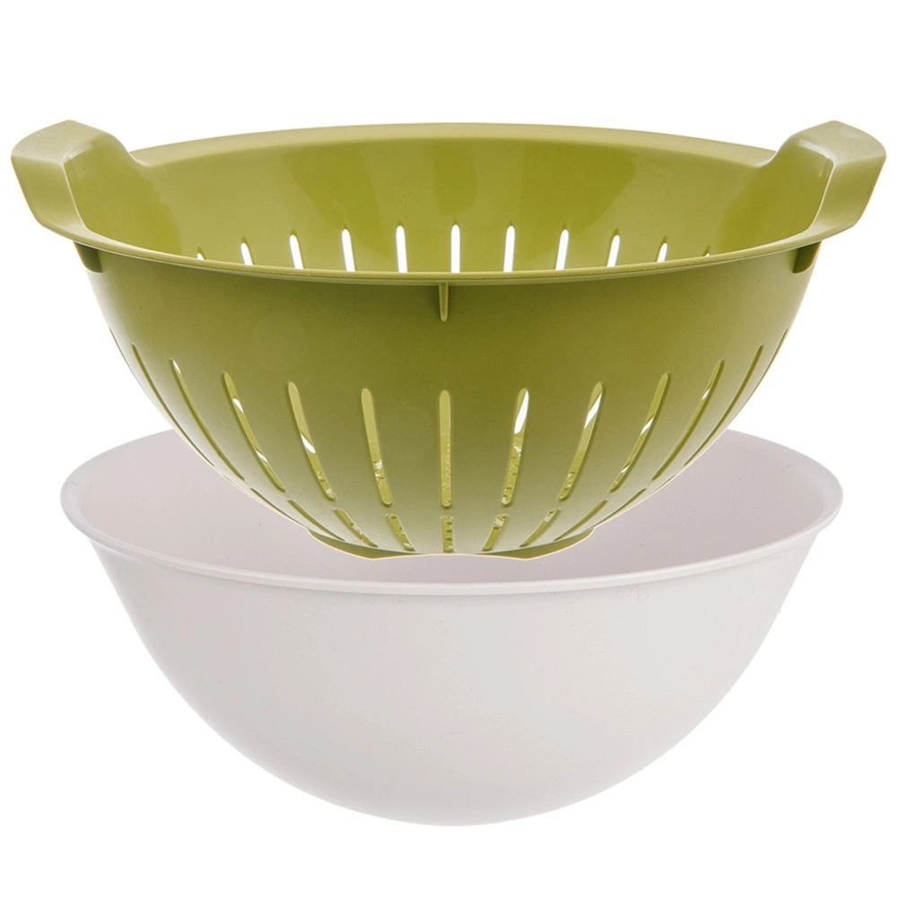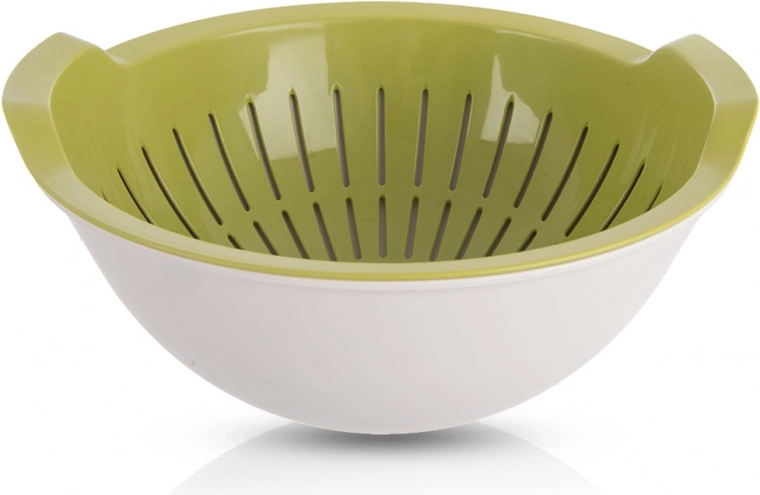 Praktická sada cedník + miska 2v1 pro rychlé oplachování a cezení ovoce, zeleniny či těstovin. Vnitřní vyjímatelný cedník pohodlně odkapává do stabilní mísy, obě části jsou z kvalitního plastu bez BPA, vhodné do myčky a miska i do mikrovlnky. Úsporné vkládací řešení šetří místo v kuchyni.