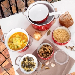 Ideální na skladování, servírování a ohřev pokrmů. Vhodná pro všechny typy sporáků včetně indukce a pro mytí v myčce.