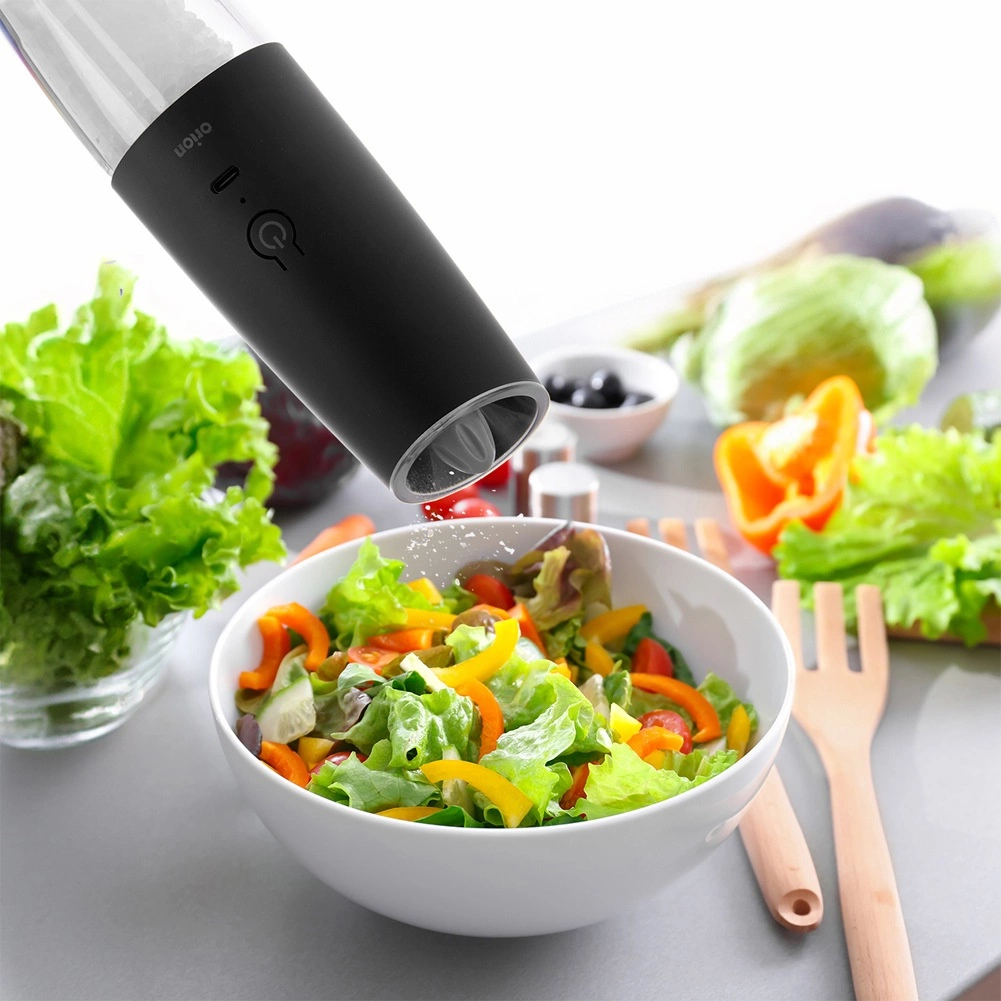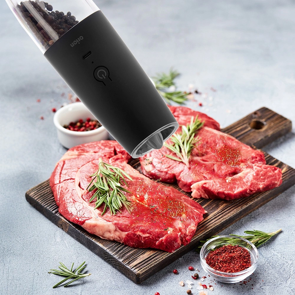 Užijte si čerstvě namleté koření jediným pohybem ruky. Elektrický mlýnek s dobíjecím akumulátorem se spustí automaticky po otočení dnem vzhůru a díky keramickému mechanismu si poradí i s tvrdšími zrny. Průhledný zásobník umožní snadnou kontrolu množství a elegantní černé provedení skvěle zapadne na kuchyňskou linku i stůl.