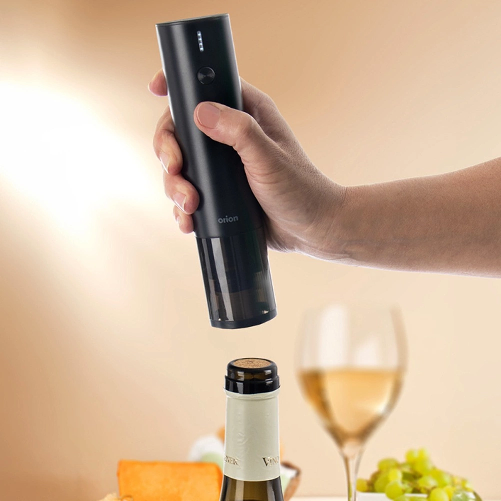 Užijte si víno bez námahy – tento elektrický otvírák ORION otevře láhev stiskem tlačítka a šetrně vyjme korek bez jeho poškození. Průhledná spodní komora poskytuje kontrolu nad procesem vytahování korku a elegantní černé provedení doplní každou domácnost.