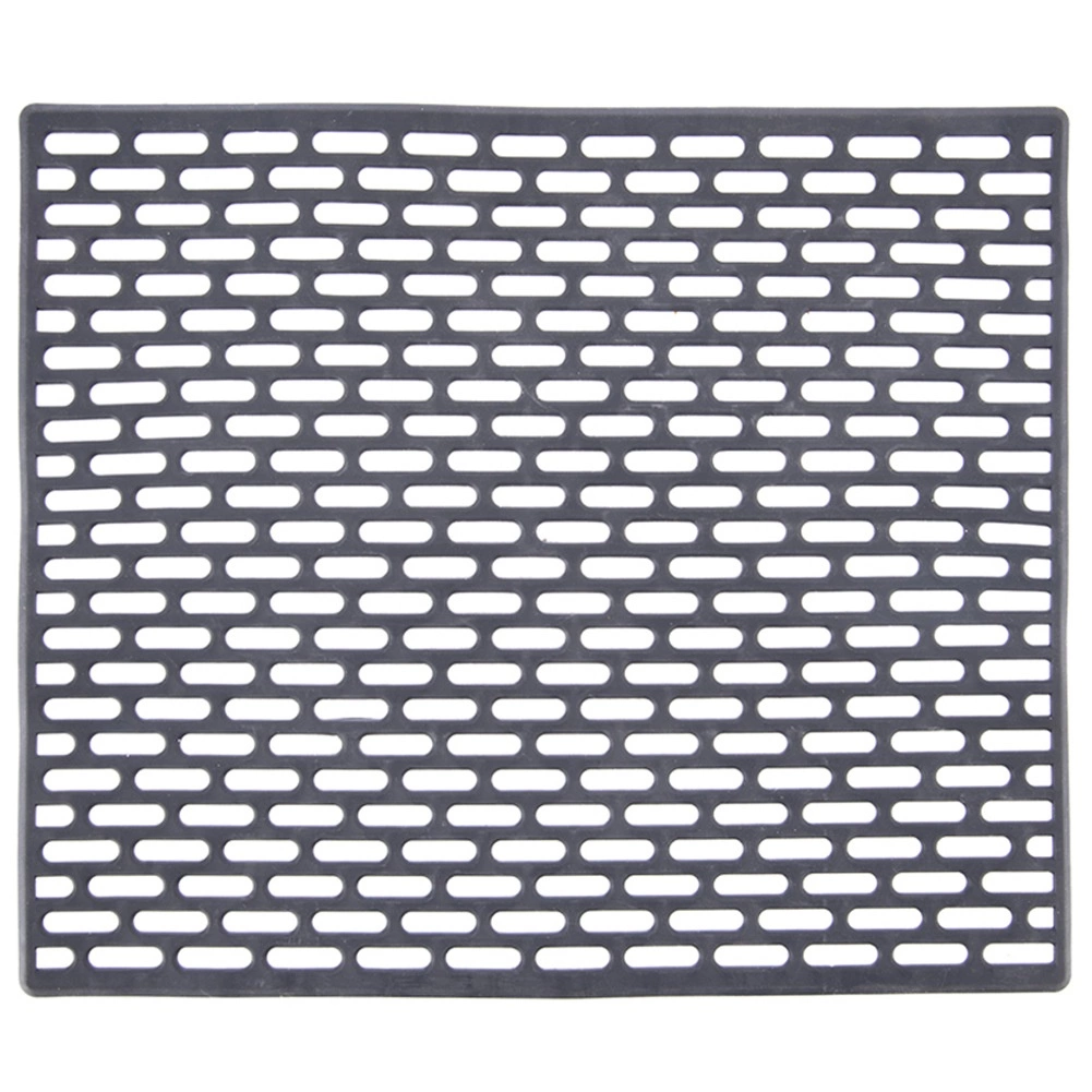 Praktická gumová podložka do dřezu o rozměrech 33 × 28 × 0,1 cm spolehlivě chrání dno před poškrábáním a nárazy. Díky perforaci zajišťuje plynulý odtok vody, je protiskluzová a odolná vůči vlhkosti. Univerzální šedá barva se hodí do většiny kuchyní a podložka je vhodná pro různé typy dřezů.