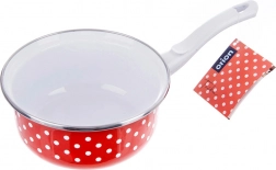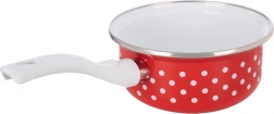Elegantní rendlík v retro designu s červeným smaltem a bílými puntíky ozdobí vaši kuchyni a zároveň nabídne praktické využití každý den. Díky dlouhé rukojeti se pohodlně drží a snadno se s ním nalévá. Smalt je zdraví bezpečný a vhodný i pro alergiky.