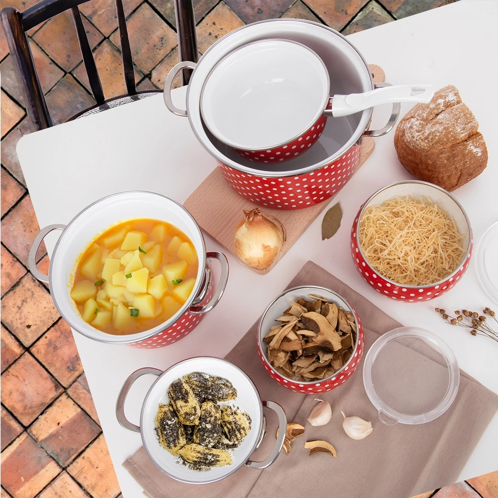 Korpus z kvalitní smaltované oceli s nerezovým lemem je odolný vůči každodennímu používání a bezpečný i pro alergiky. Povrch se snadno čistí a je vhodný do myčky.
