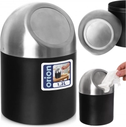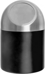 Kompaktní odpadkový koš o objemu 1,2 l s uchylným víkem kombinuje nerezovou ocel a matně černé tělo pro stylový vzhled v koupelně, na toaletním stolku či pracovním stole. Snadné jednoruké odhazování, omezení zápachu a rychlé čištění díky hladkému povrchu.