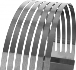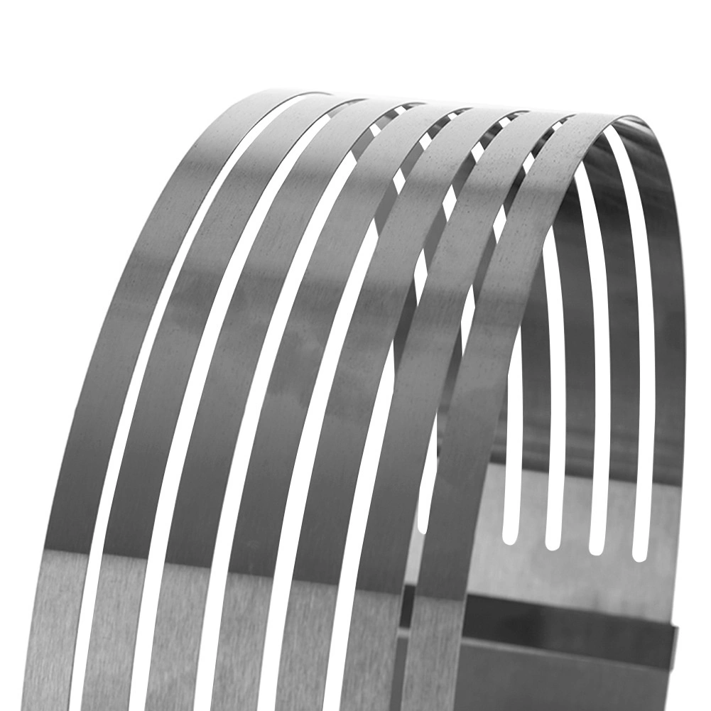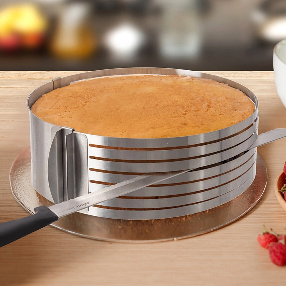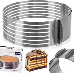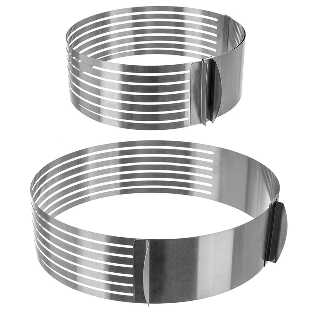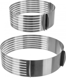 Nerezový kroužek na krájení korpusu je ideální pomocník pro milovníky pečení, kteří chtějí dosáhnout dokonale rovných vrstev bez složitého měření. Nastavitelná spona umožňuje přesně přizpůsobit průměr od 24 do 30 cm, vodicí drážky pak pomohou vést nůž v jedné rovině.