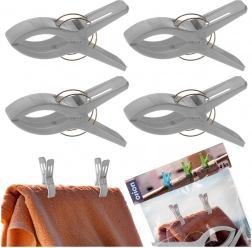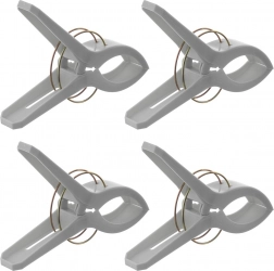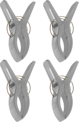 S touto sadou čtyř plážových klipsů už vítr ručník ani deku neodfoukne ani nesesune. Klipsy mají ergonomický tvar kolíčku, pohodlně se mačkají a zároveň spolehlivě drží díky silné pružině. Jsou odolné, lehké a šetrné k textiliím, takže nezanechávají stopy a nepoškozují vlákna.