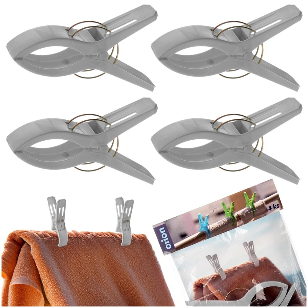 Kovová pružina vytváří stabilní tlak na čelistech, takže ručník či deka drží i při silnějším větru.