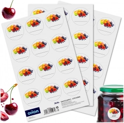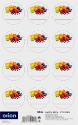 Praktická sada 36 samolepicích etiket na sklenice o průměru 3,5 cm usnadní označování domácích zavařenin, koření i lahví. Samolepicí formule zajistí snadnou aplikaci bez lepidla, laminovaný papír s motivem ovoce je odolný a působí elegantně. Každá etiketa má místo pro popis (název, složení, datum), takže pomůže s organizací kuchyně a spíže. Oryginalny produkt značky ORION.