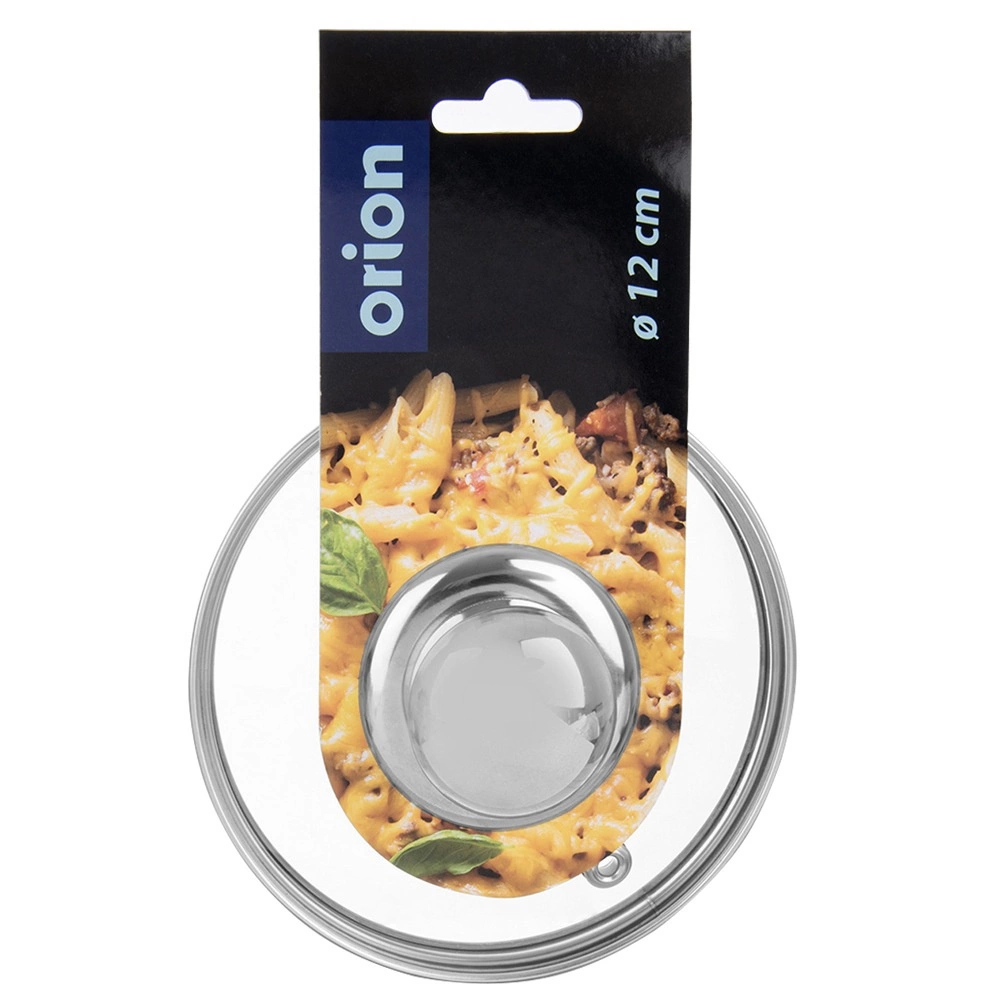 Praktická skleněná poklice ORION o průměru 12 cm je ideální doplněk pro malé hrnce, rendlíky a pánve. Průhledné žáruvzdorné sklo s nerezovým lemem a masivním úchytem zajistí bezpečnou manipulaci a dokonalý přehled o vaření bez nutnosti poklici zvedat. Mírně vypouklý tvar podporuje cirkulaci horkého vzduchu a odvzdušňovací otvor odvádí přebytečnou páru.