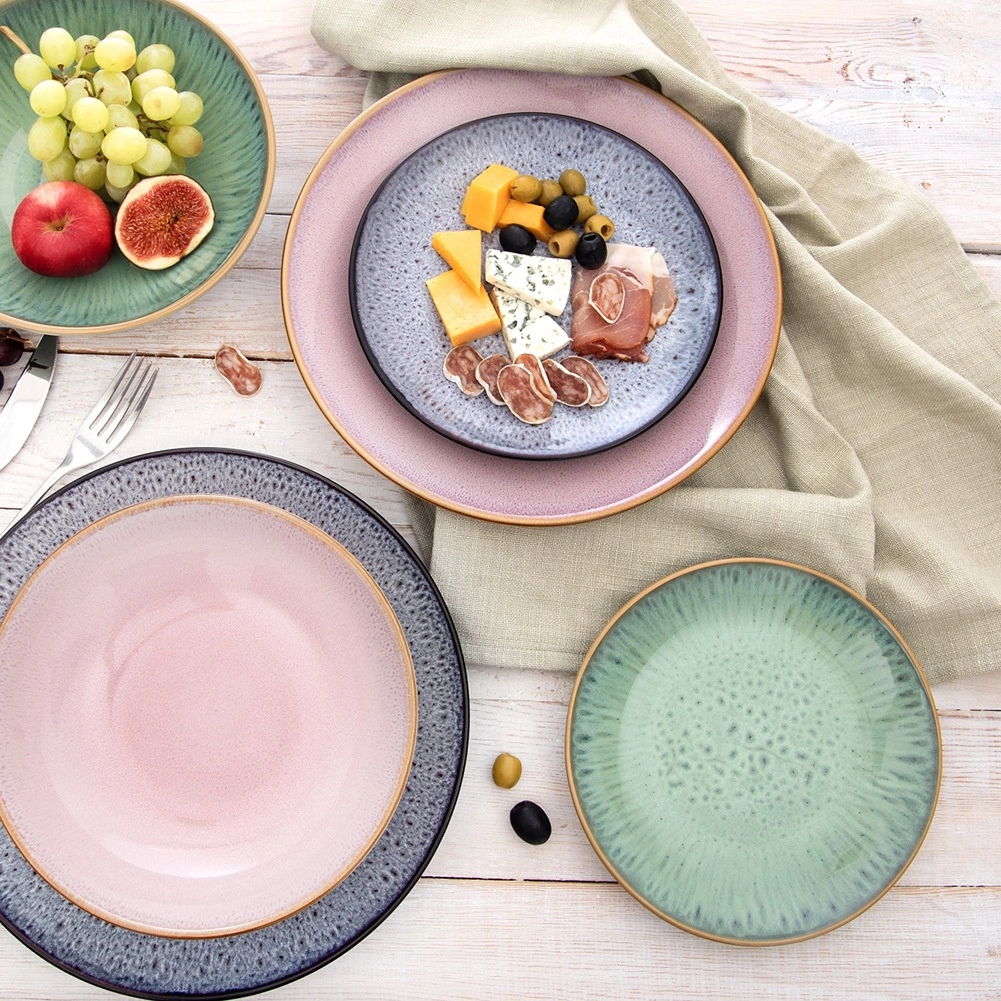 Stylový keramický dezertní talíř 20,5 cm z kolekce Glaze dodá vašemu stolování moderní nádech. Zelená glazura s jemným, efektním kropením a kontrastním lemem působí elegantně a snadno se kombinuje s dalšími kousky nádobí.