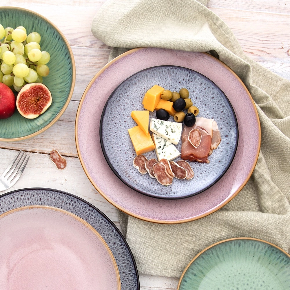Reaktivní, jemně kropená glazura dodává talíři originální vzhled a každý kus působí jedinečně na prostřeném stole.