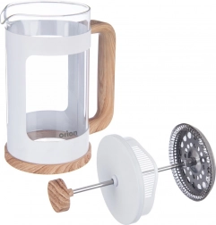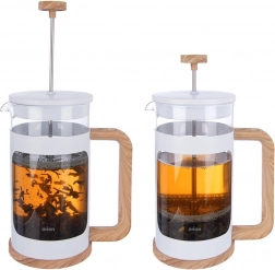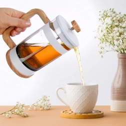 Kvalitní borosilikátové sklo odolá teplotním šokům, bílý plášť a detaily v dekoru dřeva dodají vaší kuchyni moderní vzhled. Ergonomické madlo zajišťuje bezpečné a pohodlné nalévání, tvarovaný kandličkový zobáček zase přesnost bez rozlévání. Skleněnou část lze mýt v myčce, takže údržba je rychlá a jednoduchá.