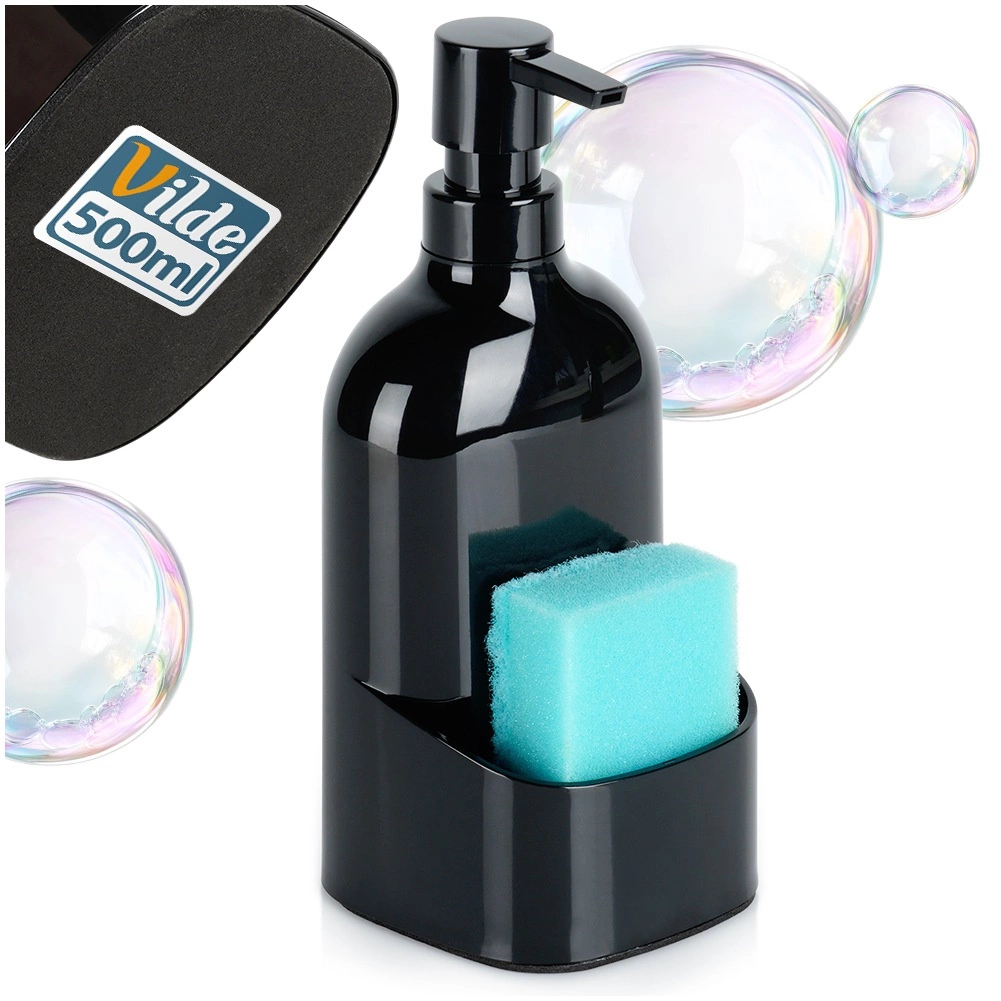 Elegantní dávkovač na mycí prostředek s integrovaným organizérem na houbičku či hadřík pomáhá udržet prostor u dřezu čistý a přehledný. Díky kompaktním rozměrům se vejde i na menší kuchyňské linky a jeho černý, lesklý povrch skvěle ladí s moderními i klasickými interiéry.
