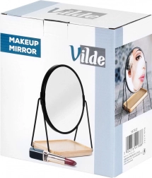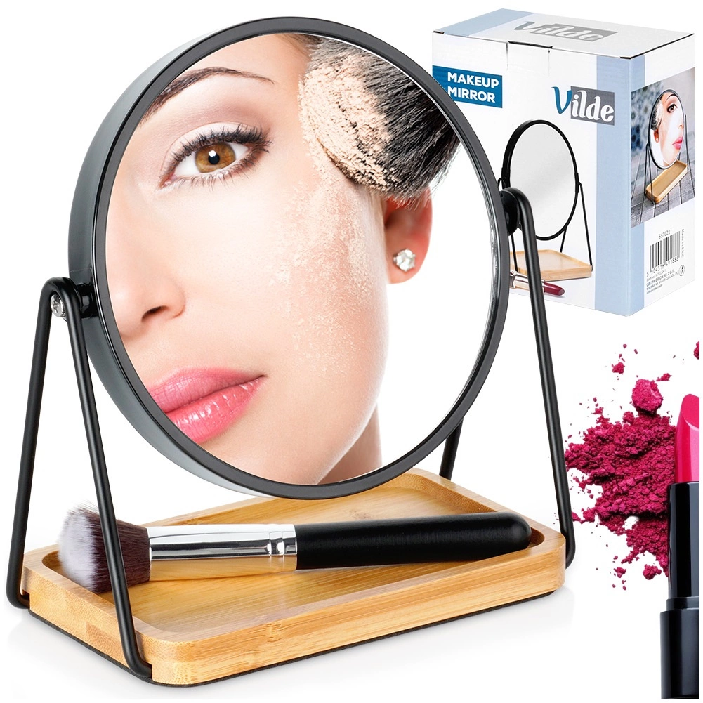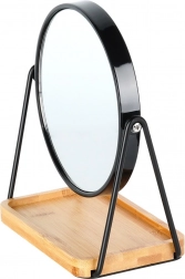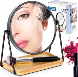 Oboustranné kosmetické zrcátko s průměrem plochy 15 cm je ideální pro každodenní líčení, úpravu obočí i detailní péči. Stabilní kovový stojan v černé barvě doplňuje přírodní bambusová základna, která zároveň slouží jako praktická odkládací polička na štětce, kosmetické doplňky či šperky. Minimalistický design v kombinaci bílé a dřeva se snadno hodí do moderních interiérů.