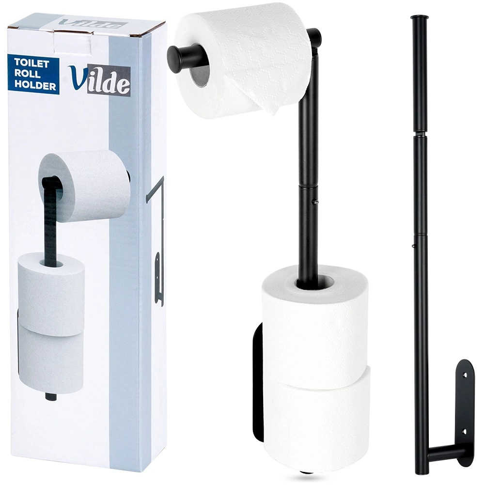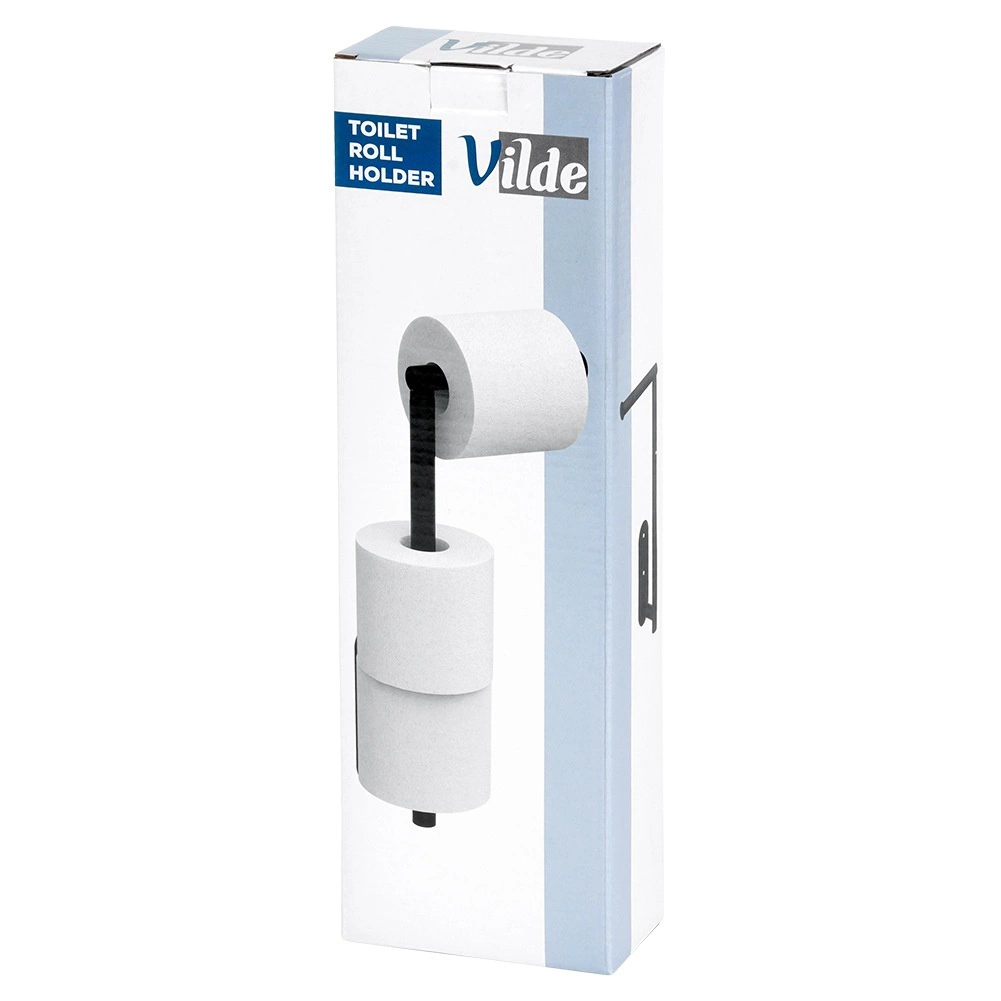 Tento víceúčelový držák toaletního papíru z nerezové oceli v matně černém provedení kombinuje podavač a zásobník v jednom. Standardně pojme 1 roli k okamžitému použití + 4 náhradní (celková výška 46,5 cm). Díky otočnému hornímu rameni jej lze nastavit i na čistě vertikální zásobník s kapacitou až 5 rolí a výškou cca 60 cm.