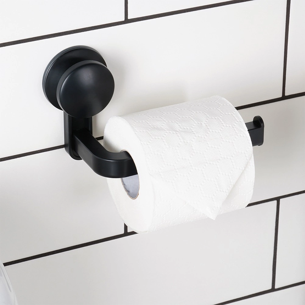 Praktický držák na toaletní papír s přísavkou v elegantní černé barvě pro snadnou montáž bez vrtání. Nabízí rychlou instalaci, stabilní uchycení na hladkých plochách a pohodlnou výměnu rolí. Ideální doplněk do moderní koupelny s nadčasovým designem a odolným provedením.