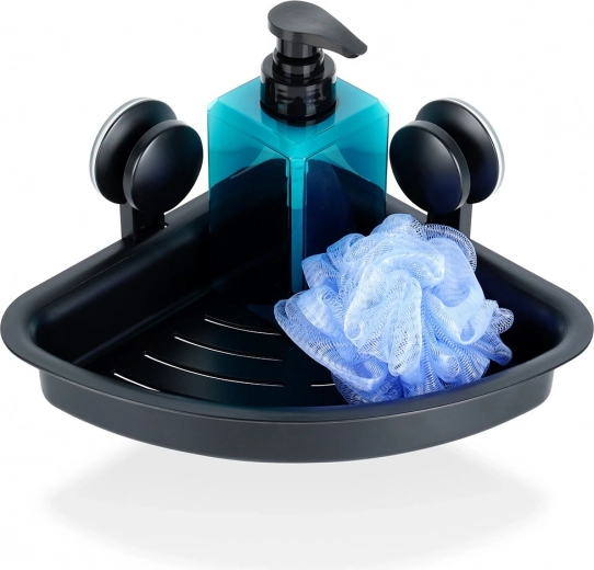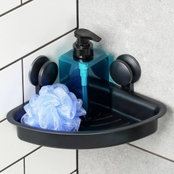 Tato rohová polička do sprchy je skvělým řešením pro každou koupelnu. Díky dvojici silných přísavek ji upevníte během chvilky bez nářadí a vrtání, což chrání obklady i sklo před poškozením. Matná černá barva působí elegantně a snadno se kombinuje s moderními koupelnovými doplňky.