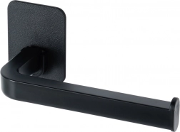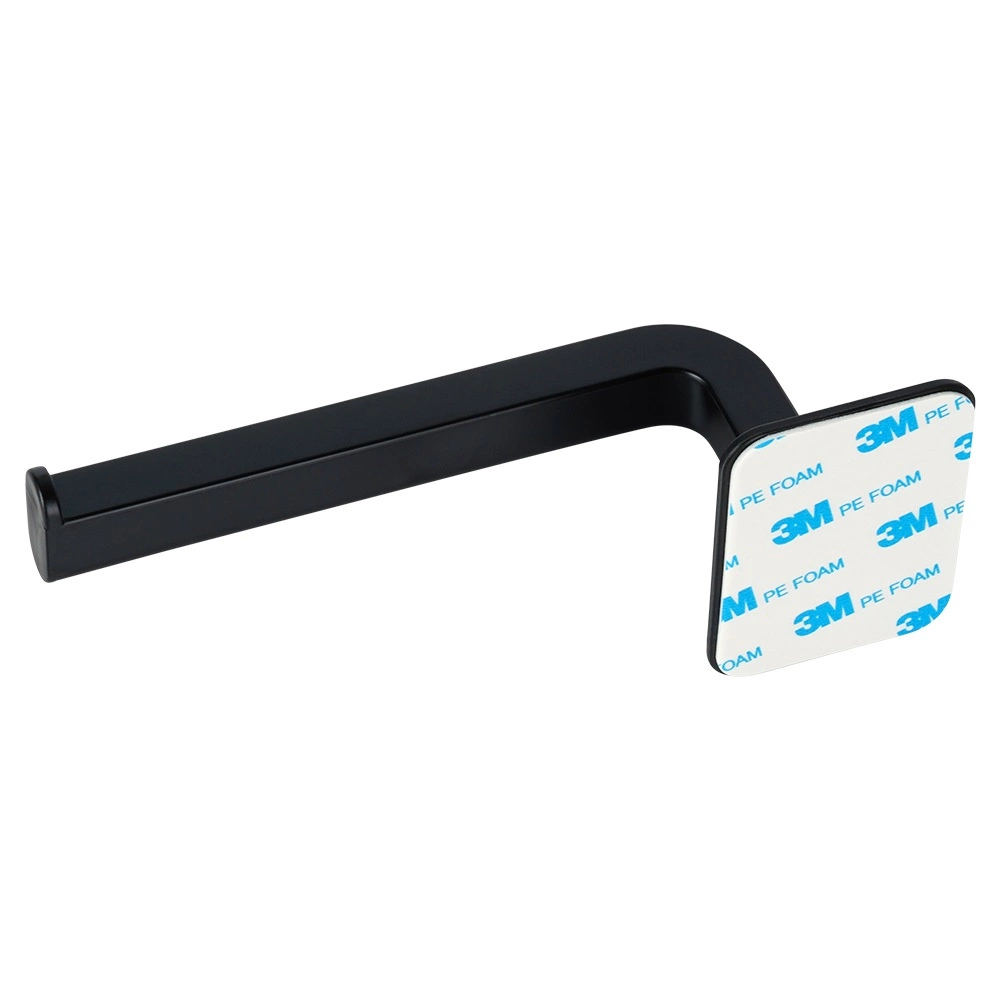 Elegantní držák na toaletní papír v černé barvě s samolepicí montáží 3M bez vrtání. Kompaktní rozměry 16,5 × 7 × 6,5 cm, moderní minimalistický design, snadná výměna role a spolehlivé upevnění na hladké povrchy.