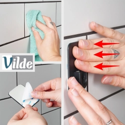 Vyrobeno z odolných materiálů pro dlouhou životnost a snadnou údržbu. Držák skvěle drží na dlaždicích, lakovaných stěnách a dalších rovných, hladkých površích. Originální produkt značky VILDE, vyrobený v souladu s evropskými standardy.