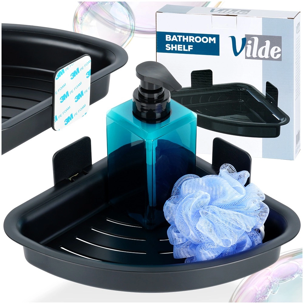 Elegantní rohová polička šetří místo a udržuje pořádek ve sprše. Matně černé provedení se hodí do moderních interiérů, odolný materiál se snadno čistí a při správném používání vydrží roky. Rozměry s držáky: 28 × 22 × 8 cm, výška samotné police: 4,5 cm.