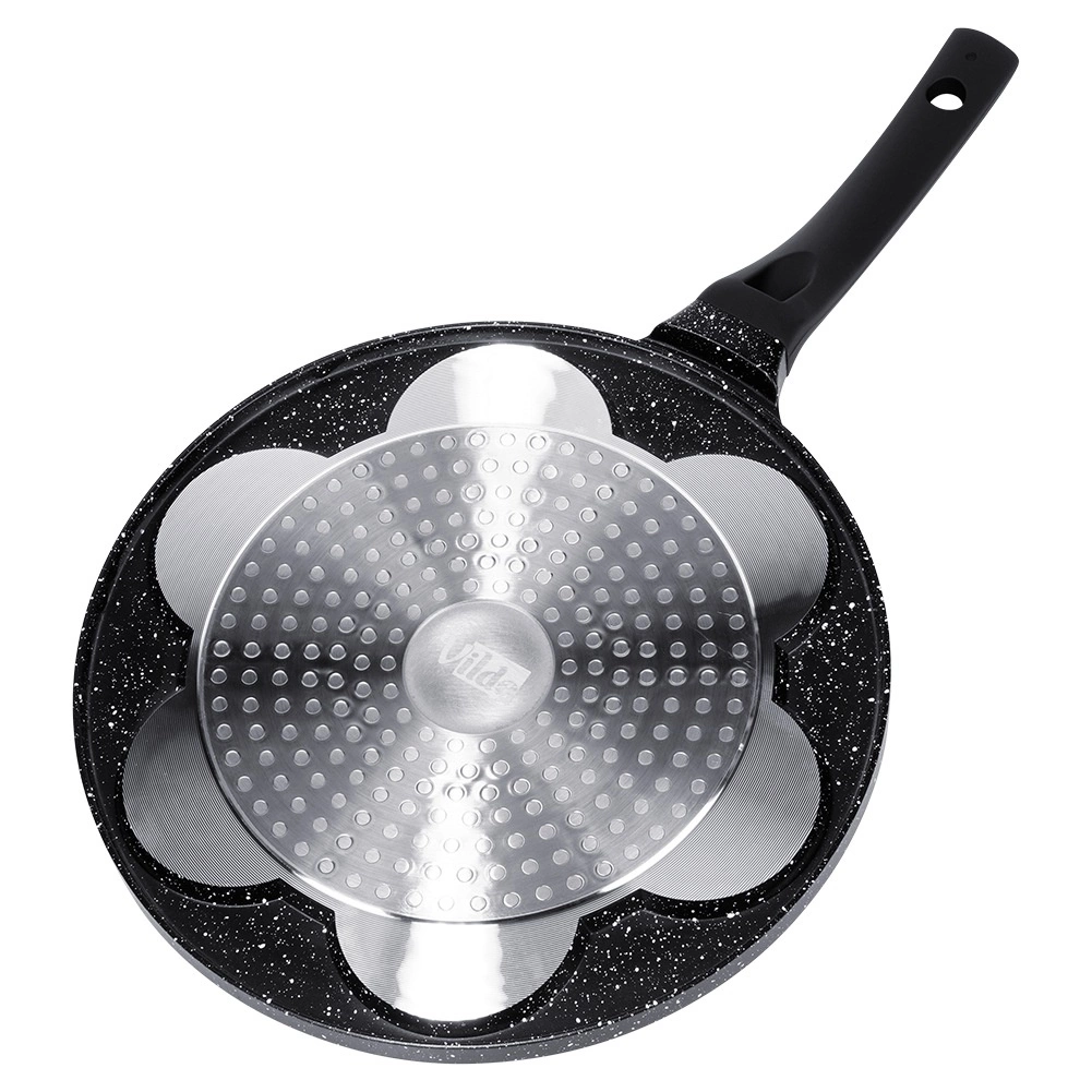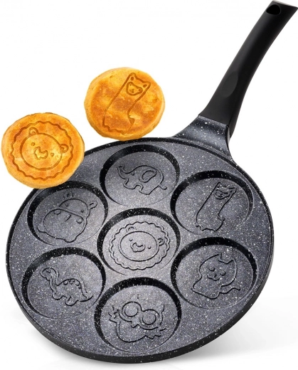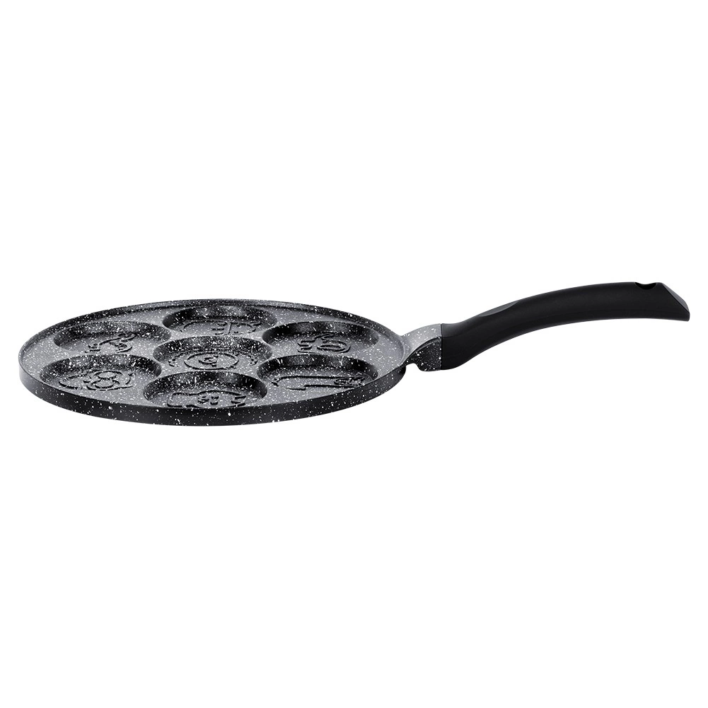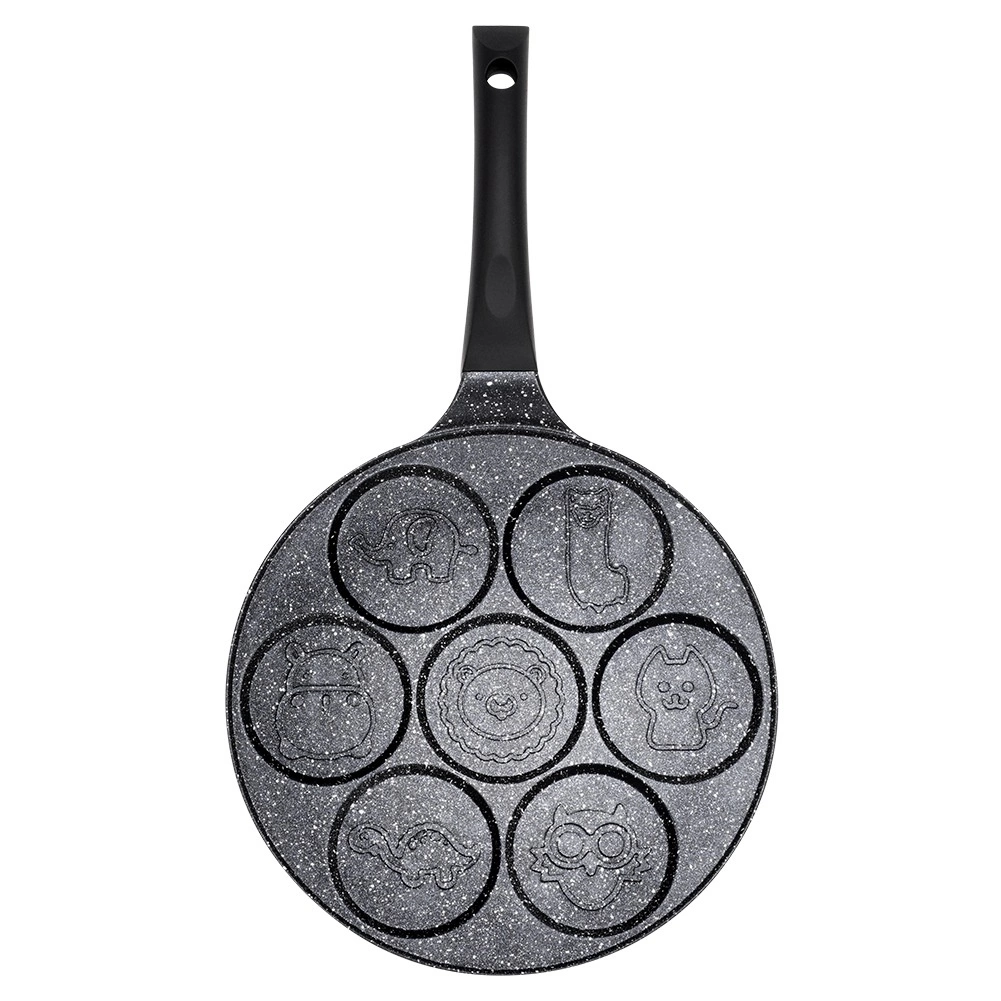 Užijte si rychlou a hravou přípravu snídaní. Granitová pánev BLACK LINE kombinuje lehké hliníkové tělo s odolnou nepřilnavou úpravou, takže volská oka, lívance i mini palačinky snadno uvolníte z formiček a pánev se pohodlně čistí. Reliéfy zvířátek na dně forem potěší děti i dospělé a promění každé ráno v malý rituál.