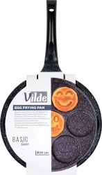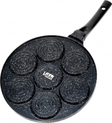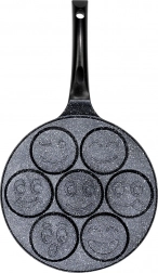 Zábavné mini lívance a dokonale kulatá vejce snadno a rychle – tato granitová pánev BASIC LINE o průměru 26 cm nabízí 7 samostatných formiček (cca 8 cm) s úsměvými reliéfy. Díky nepřilnavému granitovému povrchu vaříte s minimem tuku, rovnoměrně se zahřívá a má pohodlnou rukojeť s očkem na zavěšení. Vhodná pro plynové, elektrické i keramické sporáky a lze mýt v myčce.