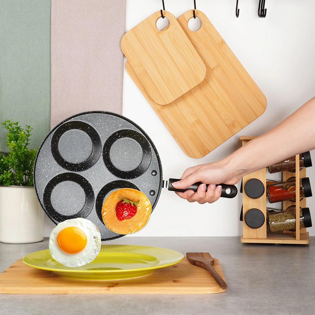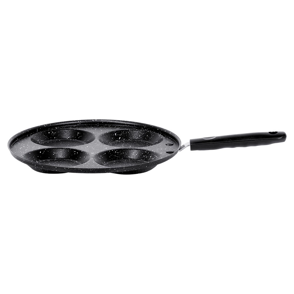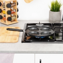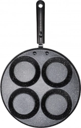 Tato granitová pánev se 4 kulatými formami je ideální pro přípravu vajec, lívanců a mini palačinek v dokonale pravidelném tvaru. Ušetří čas i energii: materiál výborně vede teplo a zajišťuje rovnoměrné smažení bez připalování.