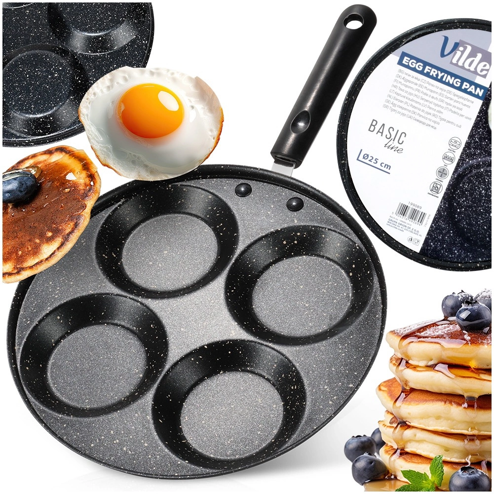 Praktická pánev se čtyřmi formami o průměru 9 cm pro perfektně kulatá vejce a lívance. Díky nepřilnavé granitové povrchové úpravě připravíte zdravé pokrmy s minimem tuku. Pánev z řady BASIC LINE má rovnoměrnou distribuci tepla a pohodlnou rukojeť s očkem na zavěšení. Vhodná pro plynové, elektrické a sklokeramické sporáky, snadná údržba a možnost mytí v myčce.