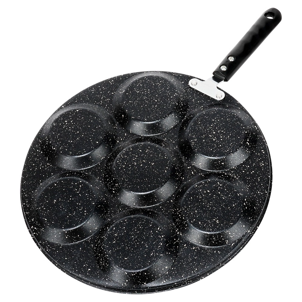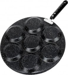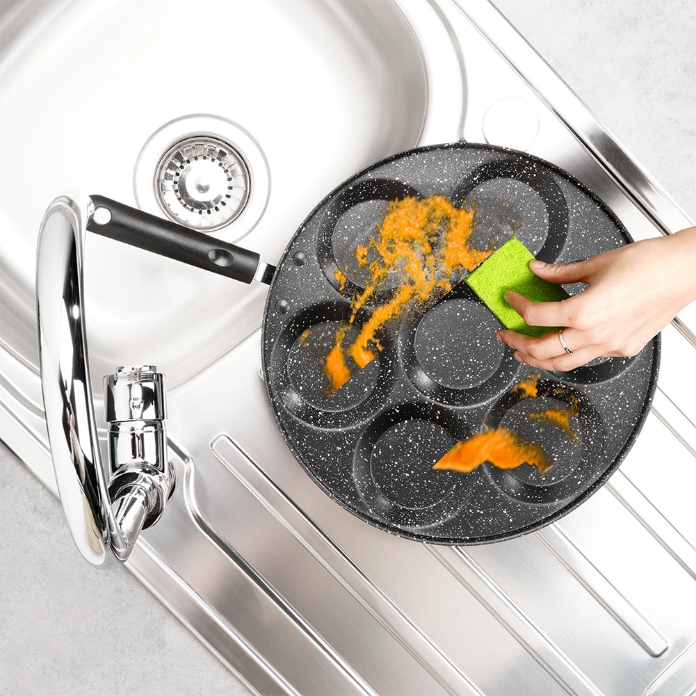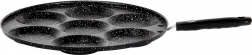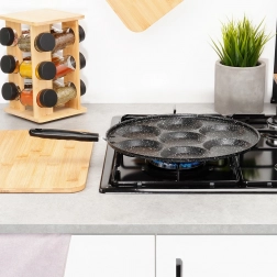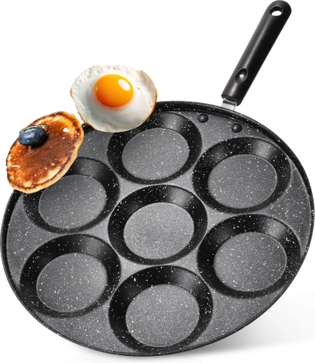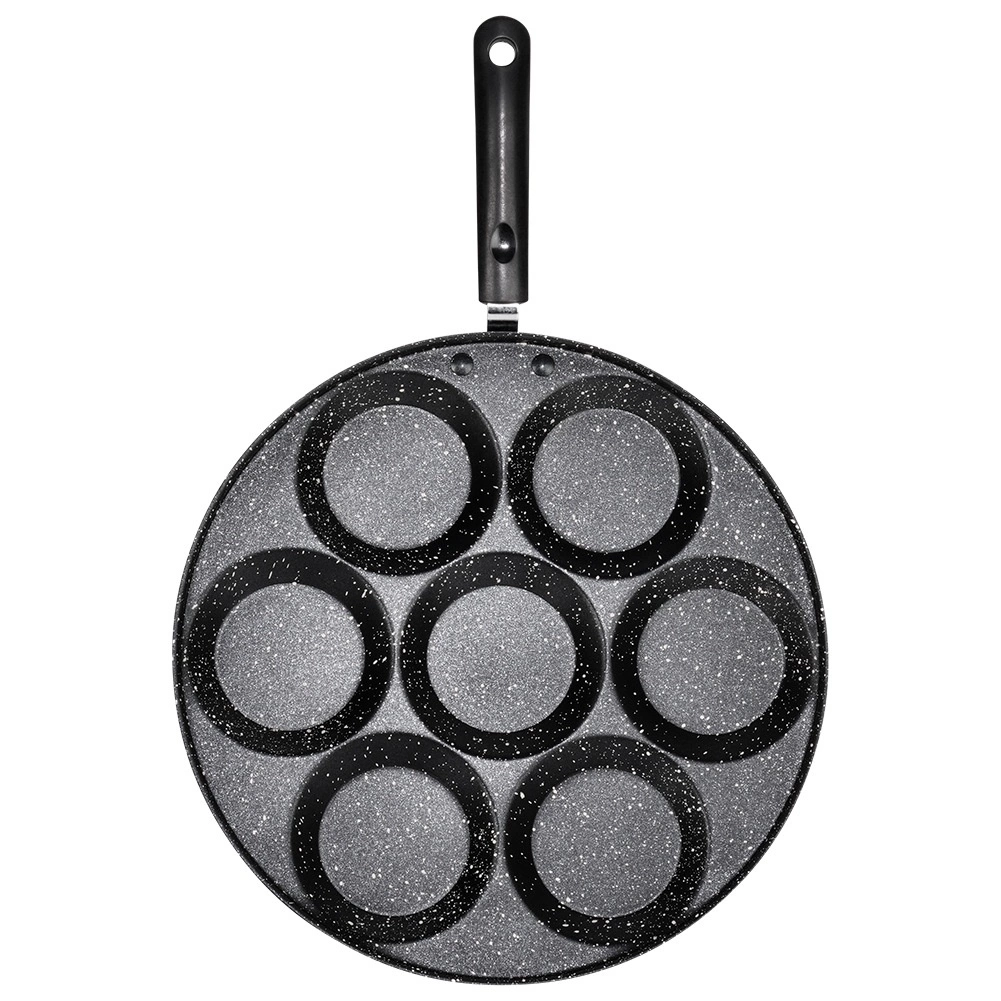 Objevte všestrannou pánev pro rychlou a pohodlnou přípravu snídaní. Sedm samostatných forem o průměru 9 cm vytváří rovnoměrné a jednotné porce, ideální pro vejce, lívanečky i poffertjes. Kvalitní nepřilnavá granitová úprava minimalizuje připékání a umožňuje vaření s menším množstvím oleje.