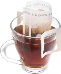 - Rychlá příprava: zavěsit na hrnek, nasypat kávu/čaj, zalít horkou vodou.