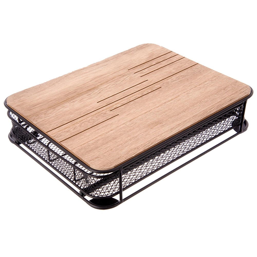 Odolná kovová síťovina s MDF deskou zajistí dlouhou životnost, gumové nožky chrání desku a brání posunu.