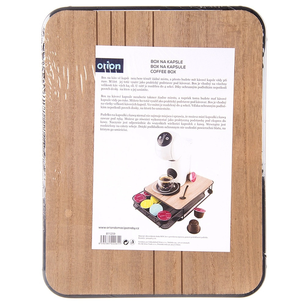 Udržujte si pořádek v kapslích a ušetřete místo na kuchyňské lince. Organizér kombinuje odolný matně černý kov s dekorativní dřevěnou deskou, takže skvěle zapadne do moderního loftového i klasického interiéru. Zásuvka s přehledným členěním nabízí rychlý výběr oblíbené kávy a pohodlný přístup.