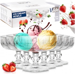 Stylové poháry s jemným rýhováním dodají každému dezertu atraktivní vzhled a lepší úchop. Díky robustnímu sklu a široké patce jsou stabilní a skvěle se hodí pro každodenní používání doma i v gastro provozech.