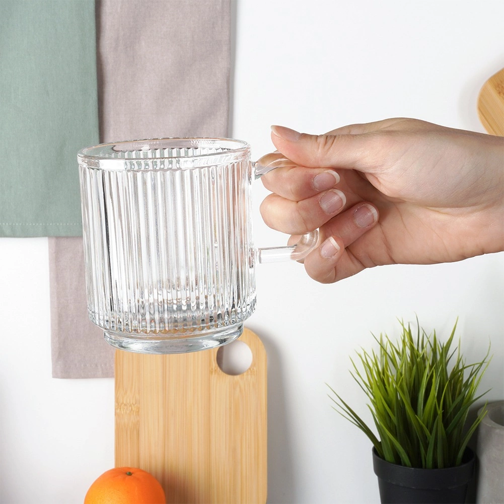 Objevte univerzální sklenice s uchem, které skvěle poslouží na čaj, kávu, vodu, limonády i džusy. Díky žebrované struktuře se příjemně drží, nekloužou a na stole působí moderně a upraveně. Praktický objem 350 ml se hodí pro každodenní použití i servírování nápojů hostům.