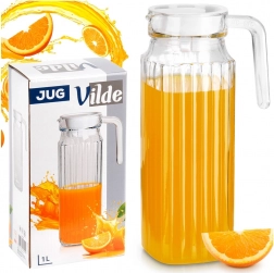 Víčko z bílého plastu chrání obsah před nečistotami a hmyzem a tvarovaná výlevka zajišťuje plynulé a čisté nalévání bez kapek. Džbán je vhodný na vodu, limonádu, džus, kompot i ledový čaj a můžete jej mýt v myčce nádobí.