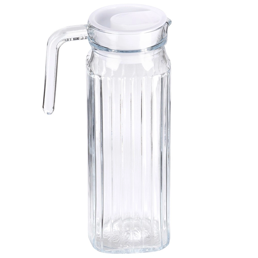 Elegantní skleněný džbán o objemu 1 l s úzkým, čtvercovým půdorysem perfektně pasuje do dveří lednice. Má pohodlné ucho, výlevku pro přesné nalévání a bílé víčko, které chrání nápoj. Díky ryhovanému sklu, bezpečnému víčku a snadné údržbě v myčce je ideální pro vodu, džusy i ledový čaj.